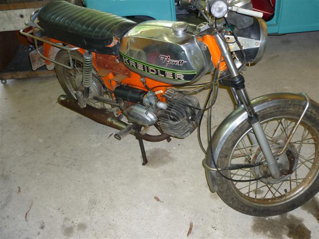 Kreidler Florett RS Bj '75 (der Klassiker schlecht hin. leider mit dem gesuchten 6,25PS Motor und 85Km/h für die Klasse M ungeeignet und absolut mieser Zustand)