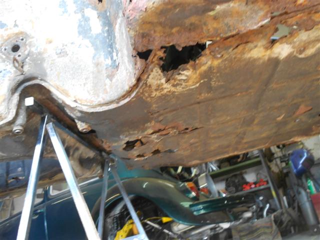 Um auch porentief den Rost zu bekämpfen und das saubere Blech vor Rost zu schützen wurde die ganze Karosse mit Fertan behandelt.