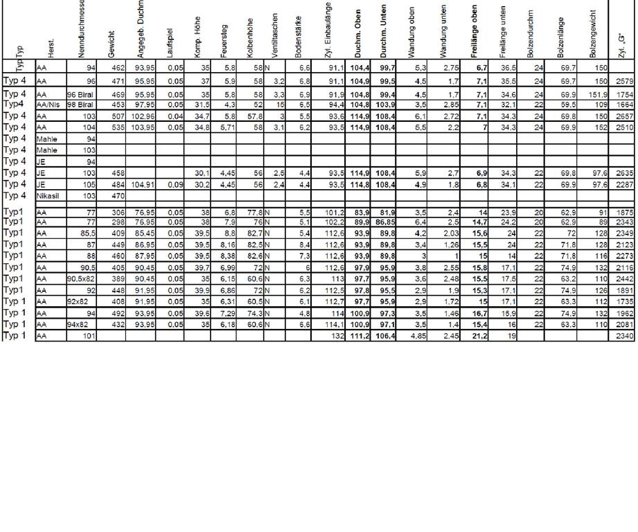 Sie beinhaltet die gängigen Kolben und Zylinderdaten der Typ1 und Typ4 Motoren.