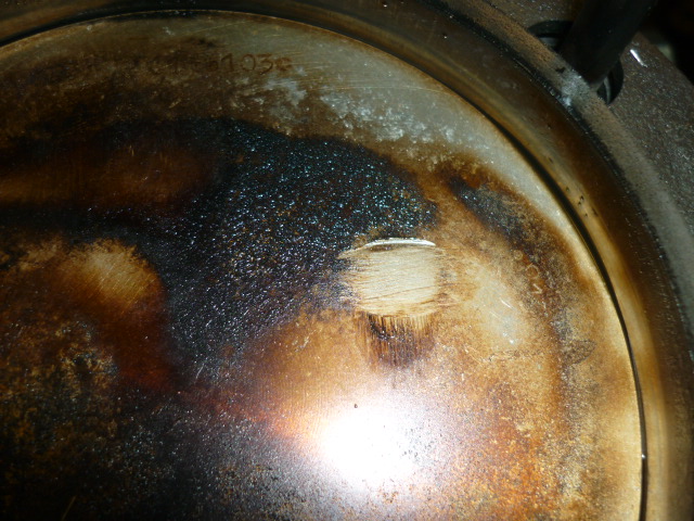 Nun galt der kritische Blick den Kolben. Es waren leichte Abdrücke von den Ventilen sichtbar. Die Ventile haben also leicht auf die Kolben aufgeschlagen. Somit sind die Ventile auch krumm, ohne sie näher betrachtet zu haben.