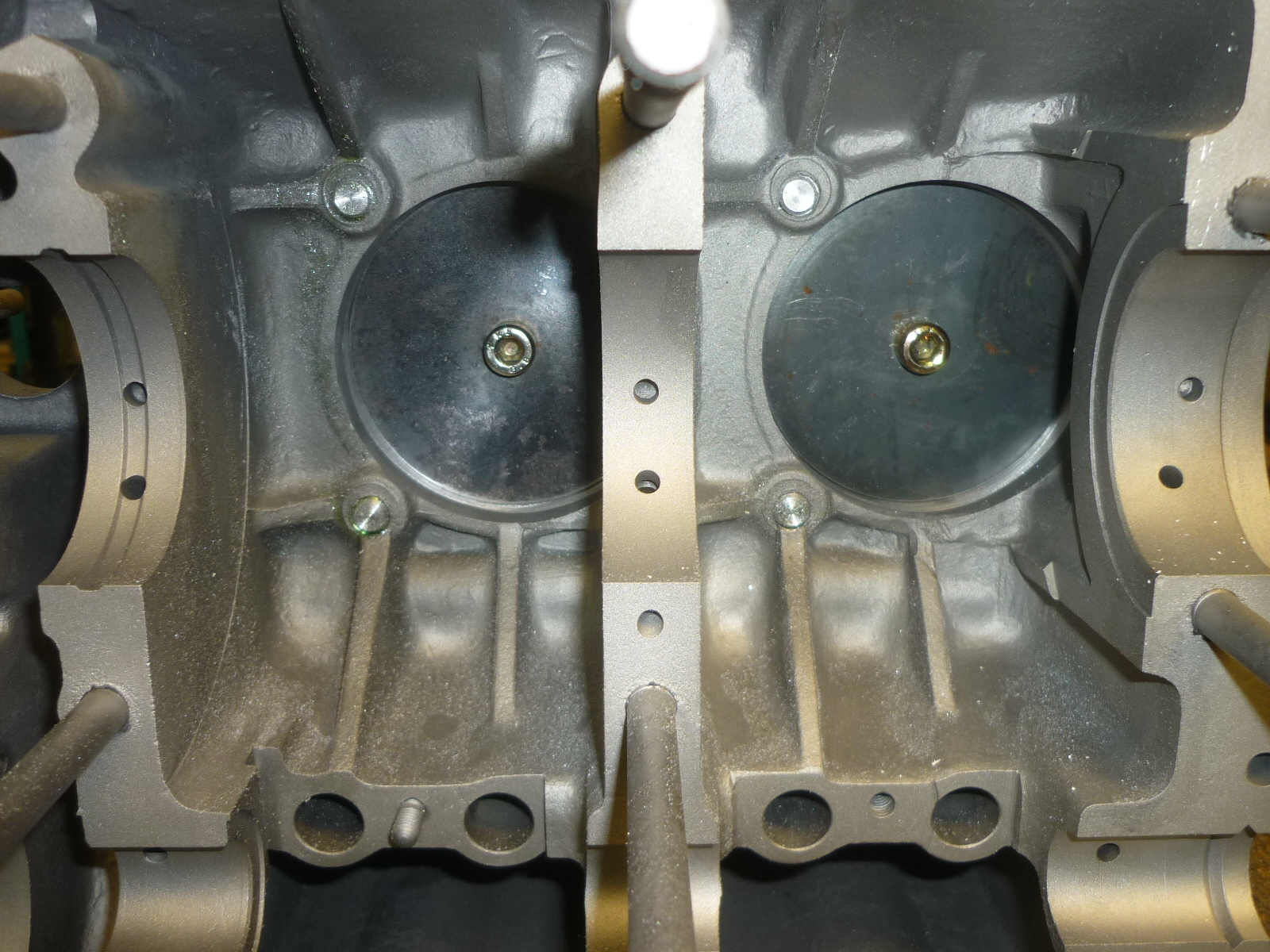 Für das 3-teilige Porsche 356-Gehäuse sind Bohrungen bis 92mm mit dem originalen Stehbolzenabstand technisch möglich. Im 30PS-Gehäuse wird es dann aber sehr sehr eng. Man muss dabei bedenken, dass die Zylinder ja auch eine Mindestwandstärke haben und die sollte möglichst 1,5mm nicht unterschreiten. Ab ca. 2,0mm Wandstärke am Zylinderfuß kann man von einer gesunden Wandstärke sprechen. Beim Messen des 30PS-Gehäuses wird man schnell merken, dass ungeachtet des Stehbolzenabstandes auch eine Blockbohrung von 94mm das absolute Maximum ist. Auch bei dieser Größe fräst man schon in die Ölkanäle. Siehe Bild.