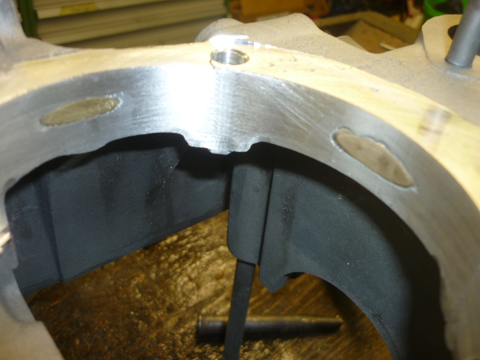 Die Gehäusehälften wurden also auf eine Bohrmaß von 94mm erweitert, da die Nikasilzylinder ein Aussenmaß von 94mm haben.