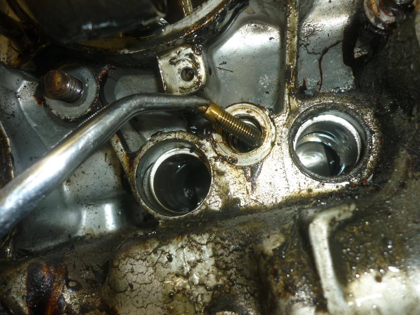 Weil der Öldruck auf Grund der mangelhaften Montage absackt, wird nun der Regelkolben seiner Feder beraubt.
