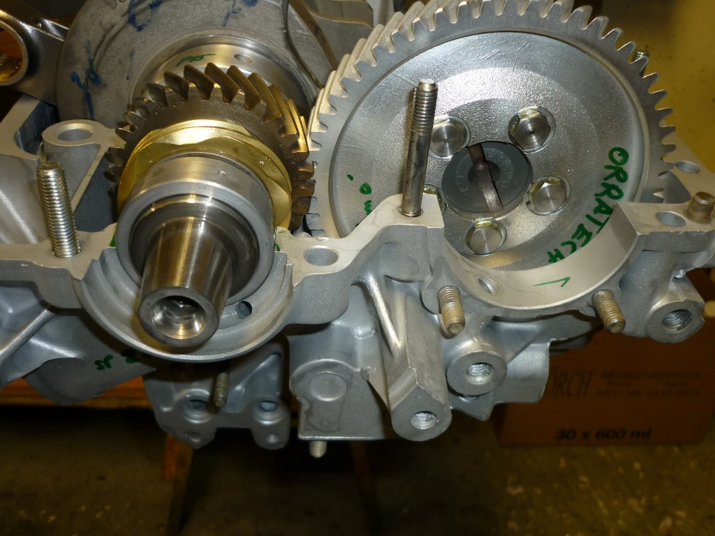 Nockenwelle. Lager prüfen anpassen. Zahnflankenspiel messen, anpassen und Freigang so wie Spiele prüfen.