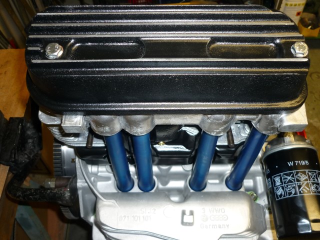 Speziell Alu-Ventildeckel mit Silikondichtschnur. Senkt die Kopftemp um ca. 20° zwei Angüssen für Zylinderkopfentlüftung