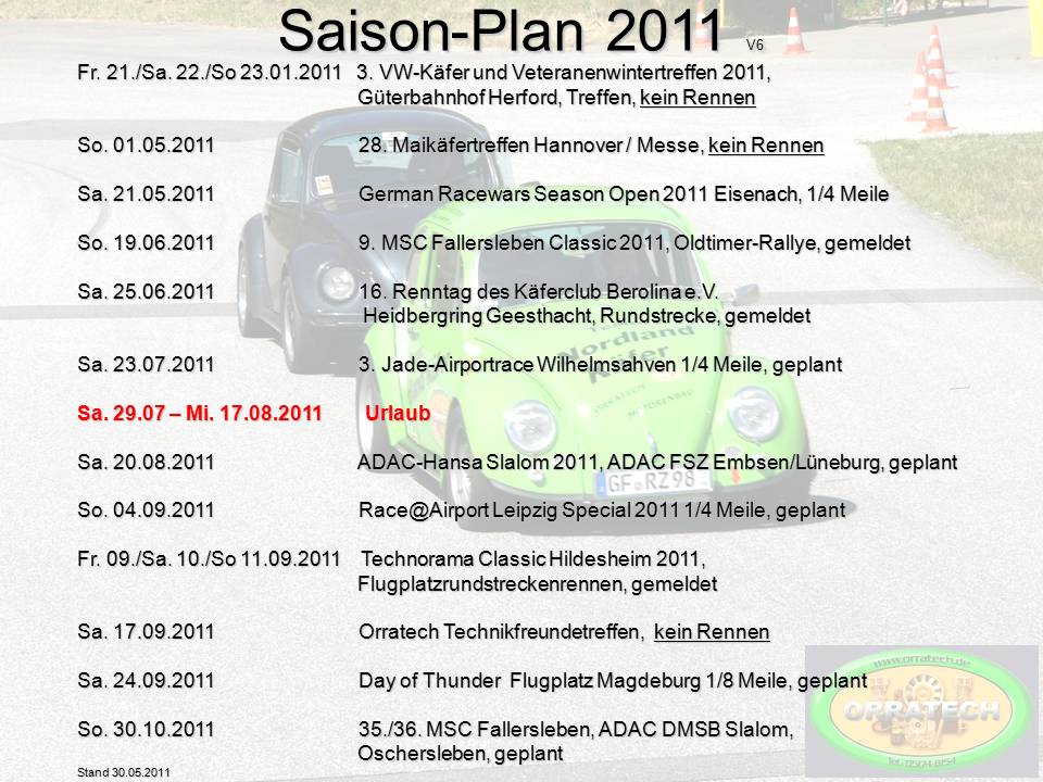 Hier findet ihr den aktuellen Stand des Saison-Plans für 2011