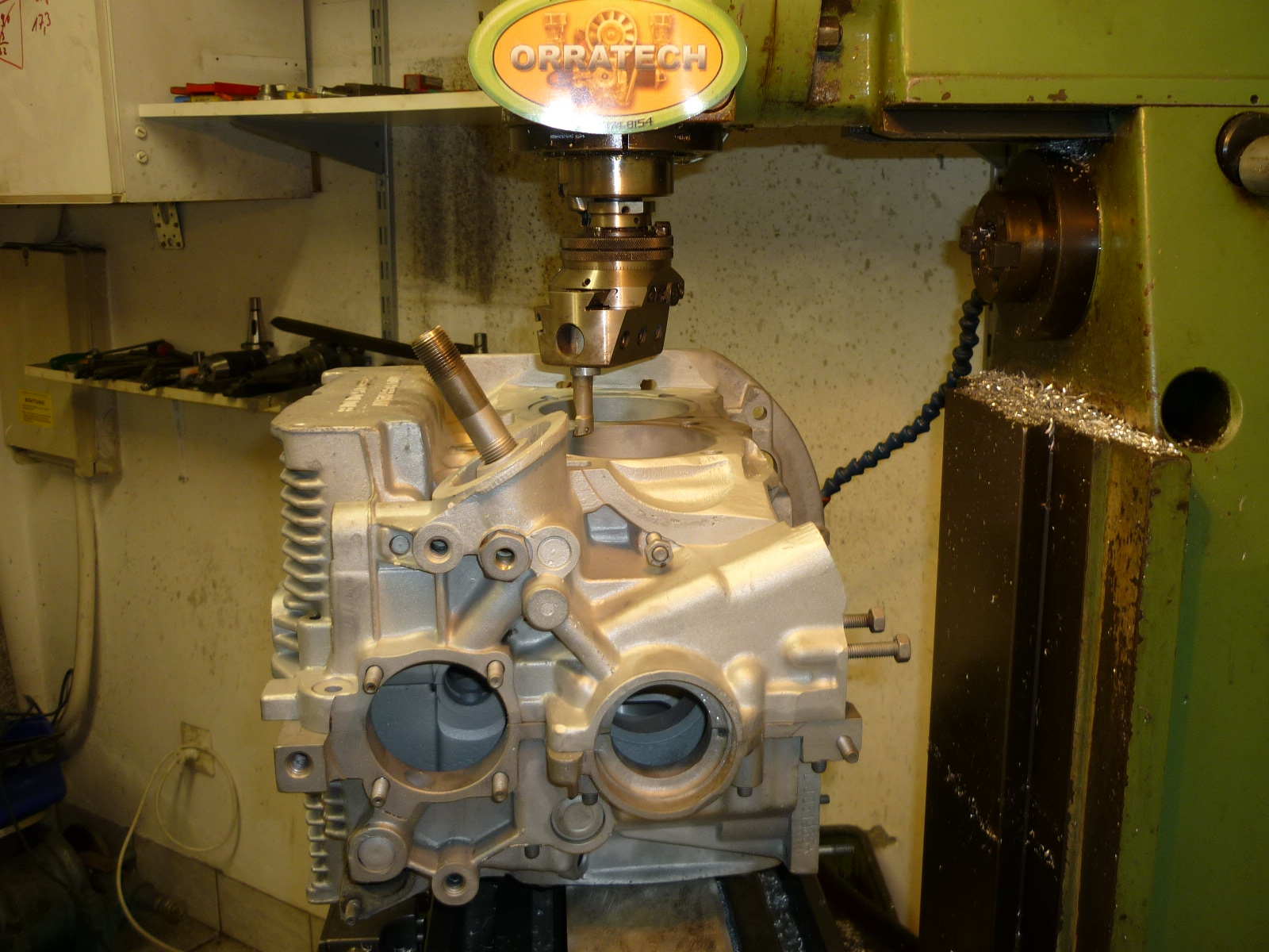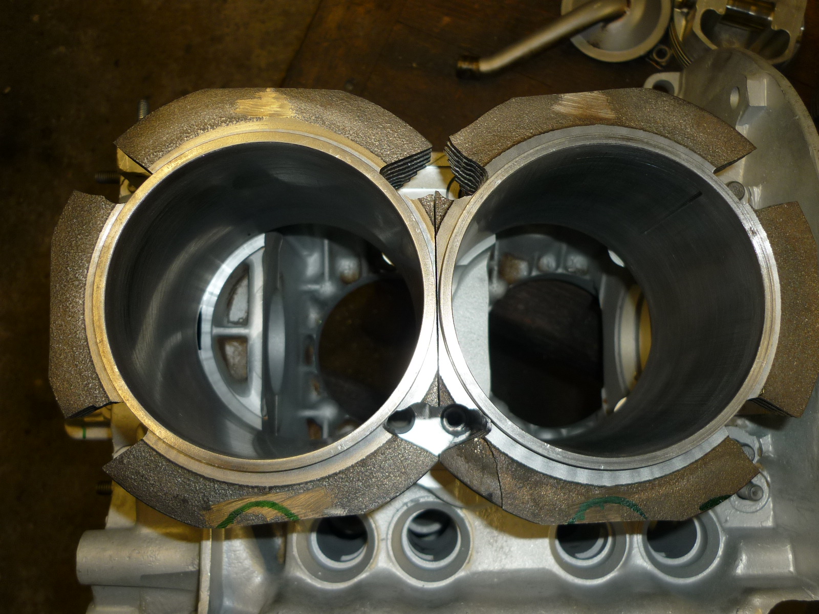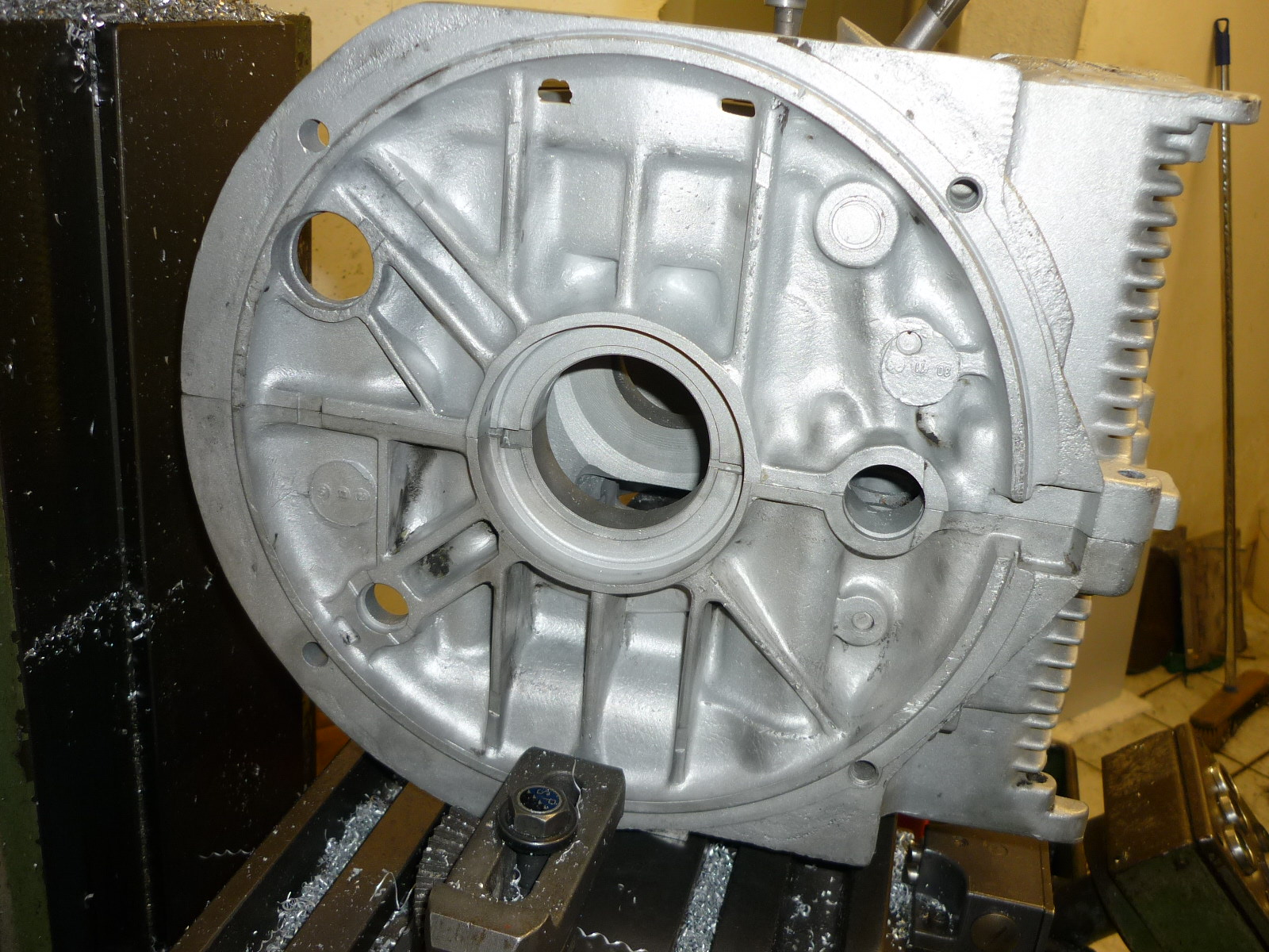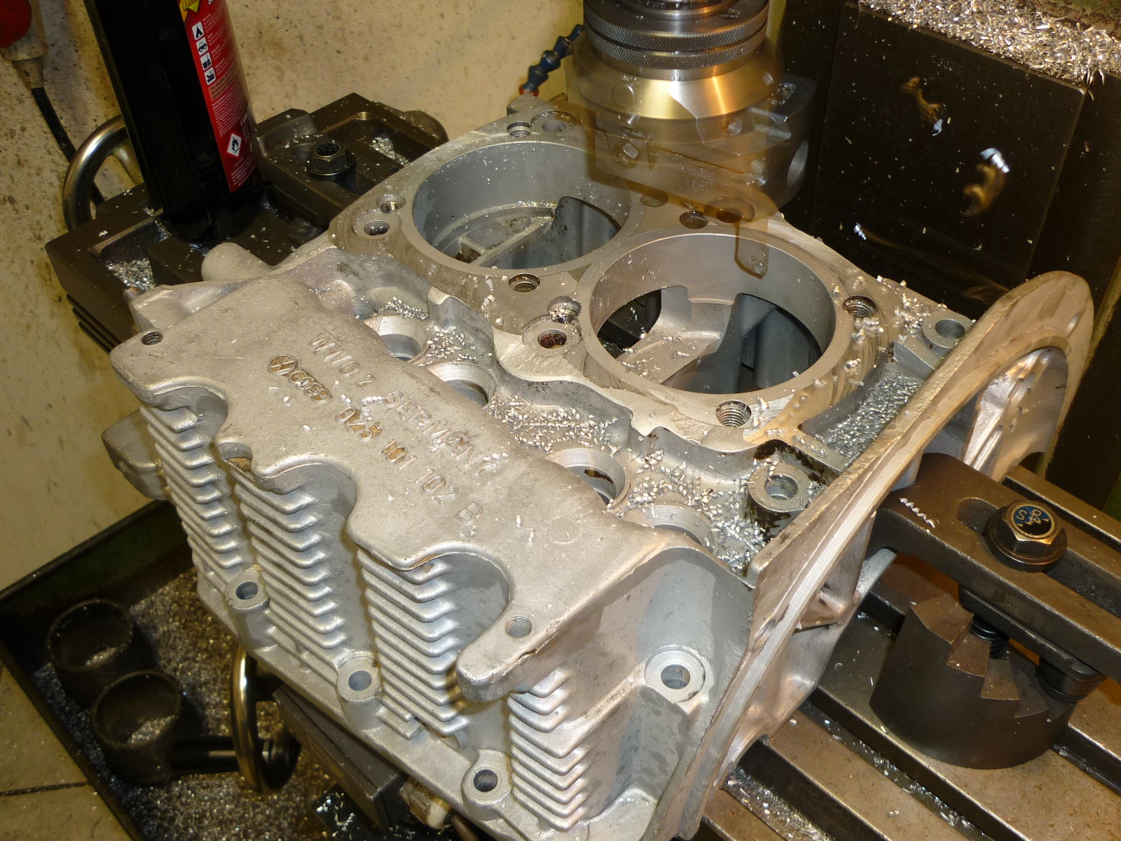 Die Zylinderaufnahmebohrungen wurden so weit aufgespindelt, das hinterher abgedrehte Typ4-Zylinder Platz finden.