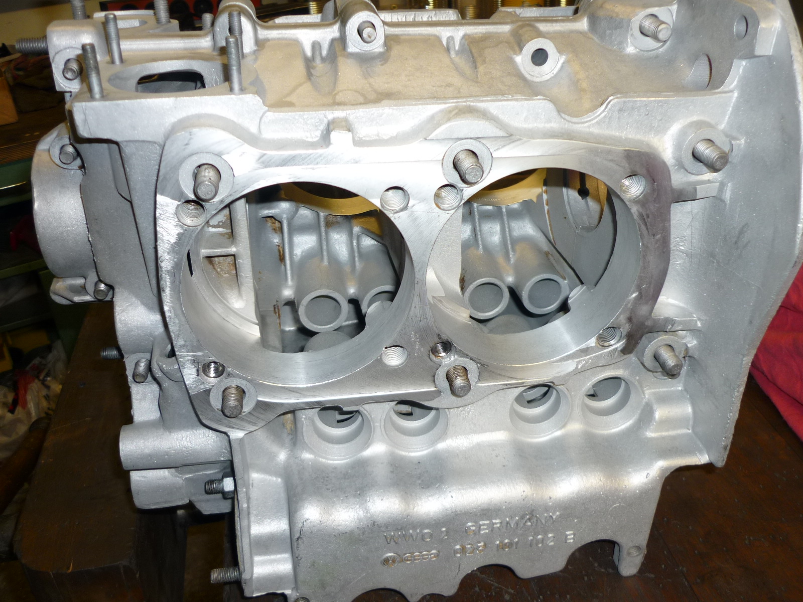 Das WBX-Gehäuse ist eigentlich ein Typ1-Gehäuse mit Wassermantel und größerem Stehbolzenabstand. Es lag also nahe zu prüfen, ob nicht die Typ4 Zylinder in das Gehäuse des WBX zu bekommen sind.