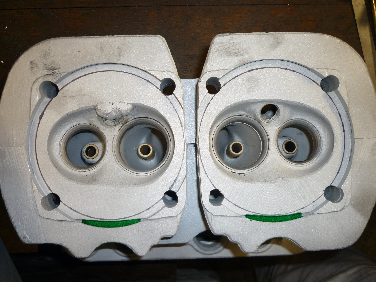 Nach dem Ausfräsen von ein paar alten Schrottköpfen hat sich erst gezeigt, dass es mit einfachen Köpfen ohne Stehbolzenlöchern, oder luftgekühlten Köpfen mit WBX-Maß nicht getan ist.