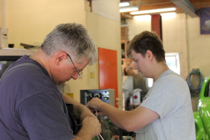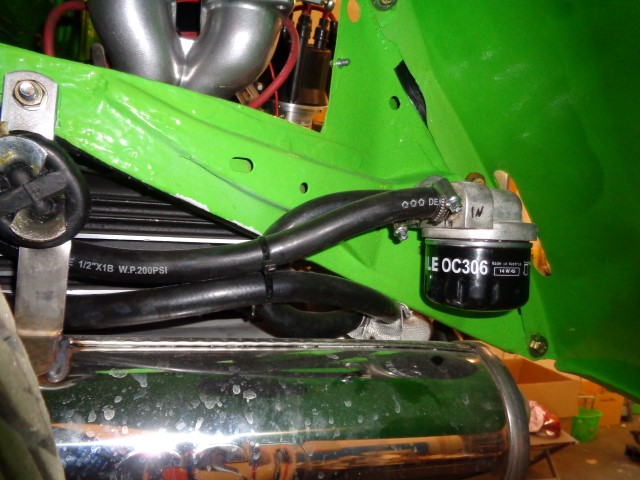 Bei Doppelvergasern meiner Meinung nach unerlässlich: Auch eine Fullflowölfilterung muss sein. Der Motor ist drin, komplett verdrahtet und Angeschlossen.